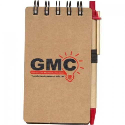 Bloco de anotações Ecológico com Caneta. - c. BEC0026 Capa Kraft 400grs.