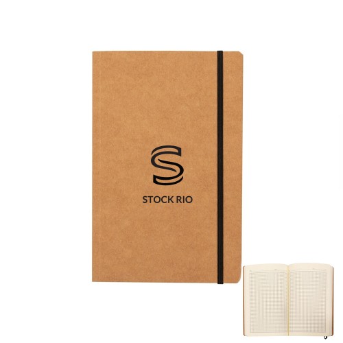 Descrição: Caderneta tipo moleskine com páginas quadriculadas, produzido em material kraft com frente e verso liso e fita elástica para fechar. Contém aproximadamente 80 folhas amareladas quadriculadas. Largura : 13,8 cm Comprimento : 21 cm Medidas aproximadas para gravação (CxL): 20,8 cm x 13,4 cm Peso aproximado (g): 169