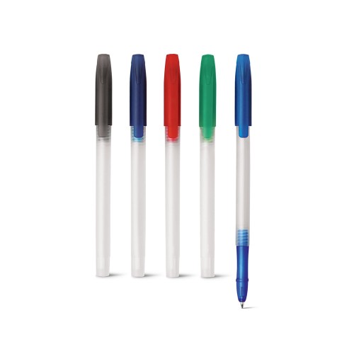 Esferográfica em PP com acabamento frost. Até 1,5 km de escrita. ø10 x 142 mm.