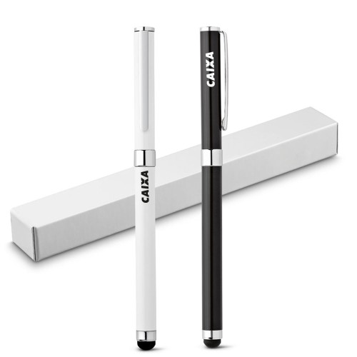 Com corpo em metal disponível em branco ou preto a caneta personalizada conta com ponta touch que evita marcas e arranhões, além de manter sempre limpa a tela de tablets e smartphones.