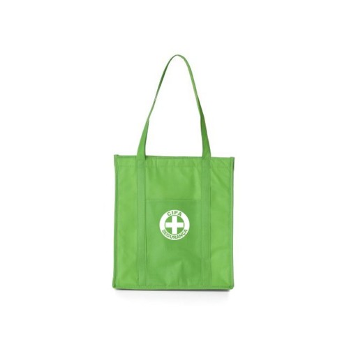 Sacola térmica com capacidade de 18 litros, contém fechamento em velcro e bolso frontal. Material: TNT. Gramatura: 80g/m². Altura: 35,7 cm. Largura: 31,5 cm. Profundidade: 17 cm. Comprimento da alça: 27,5 cm. Medidas para gravação (A x L): 22,5 cm x 15 cm. Peso: 76 g.