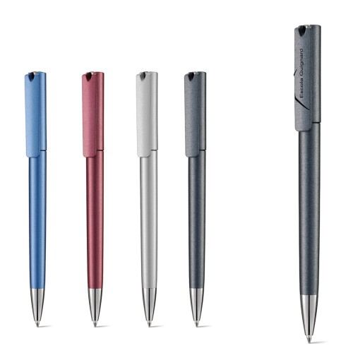 Esferográfica com acabamento metalizado e ponteira de metal. Tinta Dokumental® até 2,5km de escrita. ø9 x 140 mm