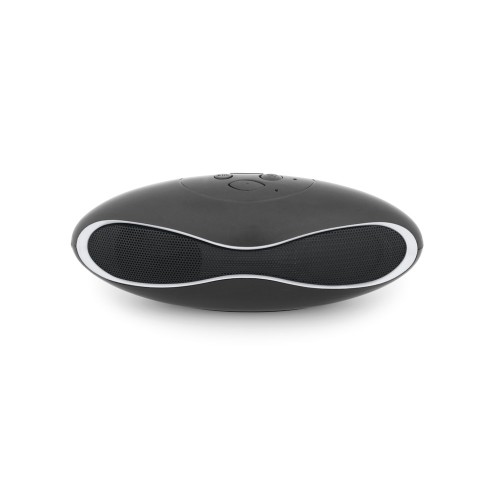 Caixa de som com microfone em ABS e acabamento emborrachado. Transmissão por bluetooth, potência de 3W/4Ω e autonomia até 3 h. Função para atender chamadas, controle de volume e conexão à playlist do dispositivo móvel. Incluso cabo USB para carregar. Fornecida em caixa presente. 150 x 56 x 58 mm | Caixa: 155 x 60 x 60 mm
