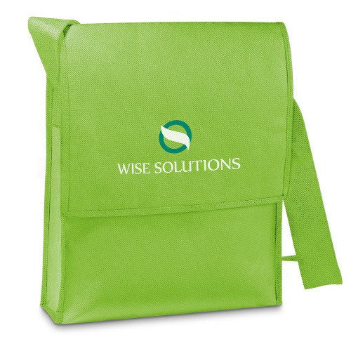 Pasta à tiracolo em non-woven (100 g/m²) com fechamento em velcro e alça de 135 cm. 260 x 330 x 60 mm.
