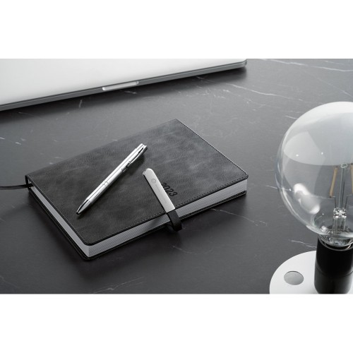 Agenda A5 em couro sintético.
