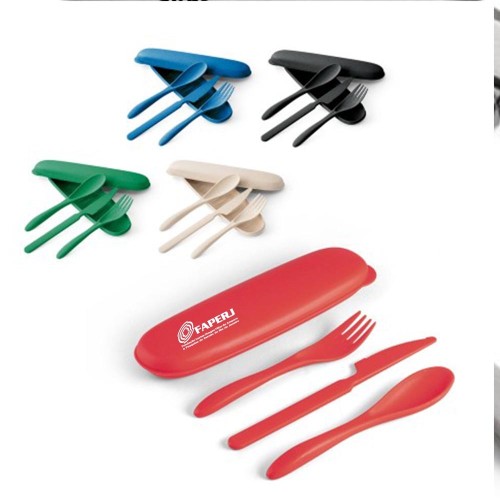 Que tal um brinde promocional para divulgar sua marca com eficiência e que seja super útil para clientes e colaboradores? Ideal para quem tem o hábito de levar almoço para o escritório e também utilizado em momentos de lazer, o conjunto de talheres personalizado possui 3 itens: garfo, faca e colher, além de um lindo estojo. Fabricado em fibra de bambu, o conjunto se torna um brinde útil e sustentável. Personalize com sua marca gravada sem serigrafia e compre a partir de 80 unidades.