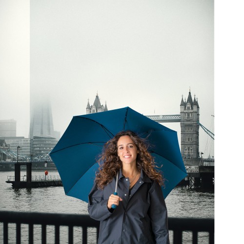 Guarda-chuva em 190T pongee, varetas em fibra de vidro, cabo em alumínio e haste revestida em borracha. Guarda-chuva à prova de vento com abertura automática. Fornecido em bolsa com alça curta para facilitar transporte. Guarda-chuva: ø1025 x 855 mm | Bolsa: 90 x 635 mm