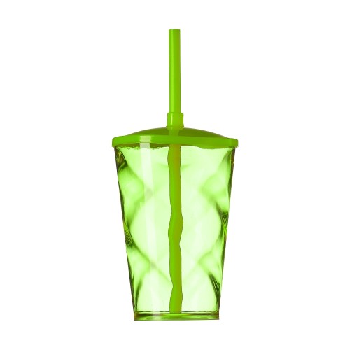 Descrição: Copo de acrílico 550ml com canudo e detalhe espiral.