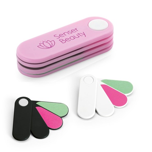 que mulher nunca precisou ter em mãos itens de manicure? Práticas, as lixas de unha estão sempre presentes nas bolsas femininas, o que faz delas uma ótima opção de brinde corporativo para empresas que querem fazer ações ou campanhas com clientes e colaboradoras. Com design atraente e funcional, as lixas de unha personalizadas podem ser customizadas com sua marca gravada em serigrafia. Disponível em preto, rosa ou branco, o kit conta com quatro lixas coloridas. Faça uma cotação conosco e adquira o produto a partir de 50 unidades Kit de 4 lixas. Composto por: 2 lixas abrasivas e 2 lixas polidoras. 22 x 65 x 17 mm