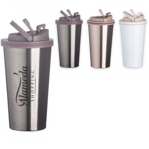 Copo é o tipo de brinde promocional prático e funcional que todo mundo gosta de ter na mesa de trabalho para tomar água ou café ao longo do dia. Uma ótima opção para presentear clientes e colaboradores em seu evento ou ação promocional é o copo 400 ml inox personalizado. Disponível na cor branco ou preto, ela vem com tampa e parede dupla. Os copos têm espaço suficiente para divulgar o diferencial da sua marca ou campanha com criatividade e eficiência. Personalize com sua marca gravada a laser ou em tampografia e compre a partir de 20 unidades. Copo de metal com tampa rosqueável. Possui alça para transporte e fundo antideslizante e alavanca para abertura do bocal. Capacidade: 450ml | Tam. 18,3 x 9,2 x 26,6 cm.