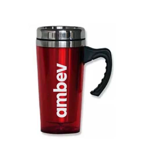 Descrição: Caneca acrílica 400ml com detalhe oval no pegador, revestimento interno e detalhes em inox. Tampa plástica resistente com sistema giratório para abertura(não é térmica). Altura : 11,6 cm Largura : 12,6 cm