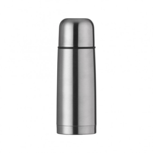 Descrição: Garrafa térmica 350ml em inox com tampa rosqueável, tampa interna em plástico resistente(basta um clique para abrir ou fechar). Acompanha capa protetora de couro sintético com alça de nylon. Altura : 19,7 cm Largura : 6,8 cm Medidas aproximadas para gravação (CxL): 12,8 cm x 6 cm Peso aproximado (g): 274