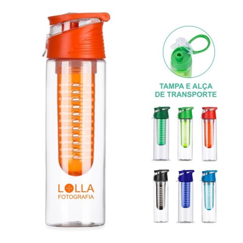 Squeeze em AS e com tampa flip top em PP com infusor de frutas e capacidade até 740 ml. Food grade. Caixa branca 94657 vendida opcionalmente. ø70 x 247 mm